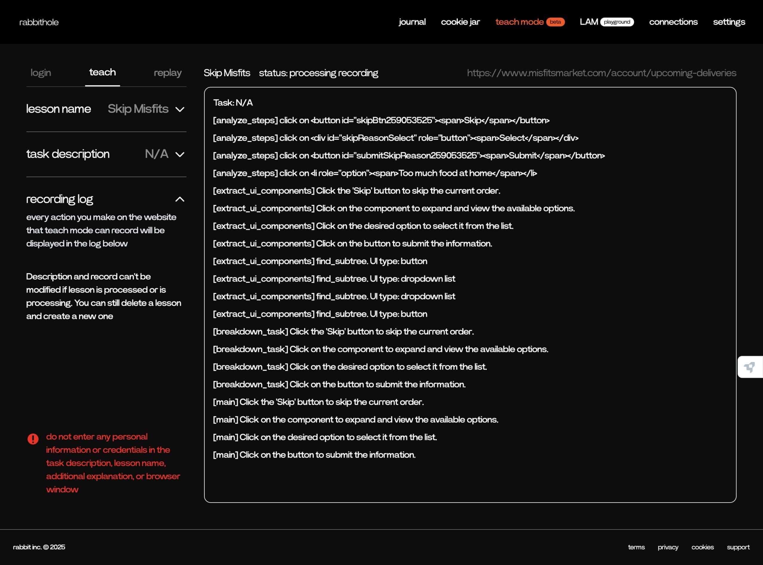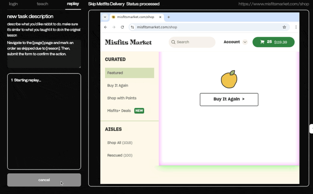 - The teaching mode works! It’s really exciting to see that Rabbit successfully skipped my grocery delivery!